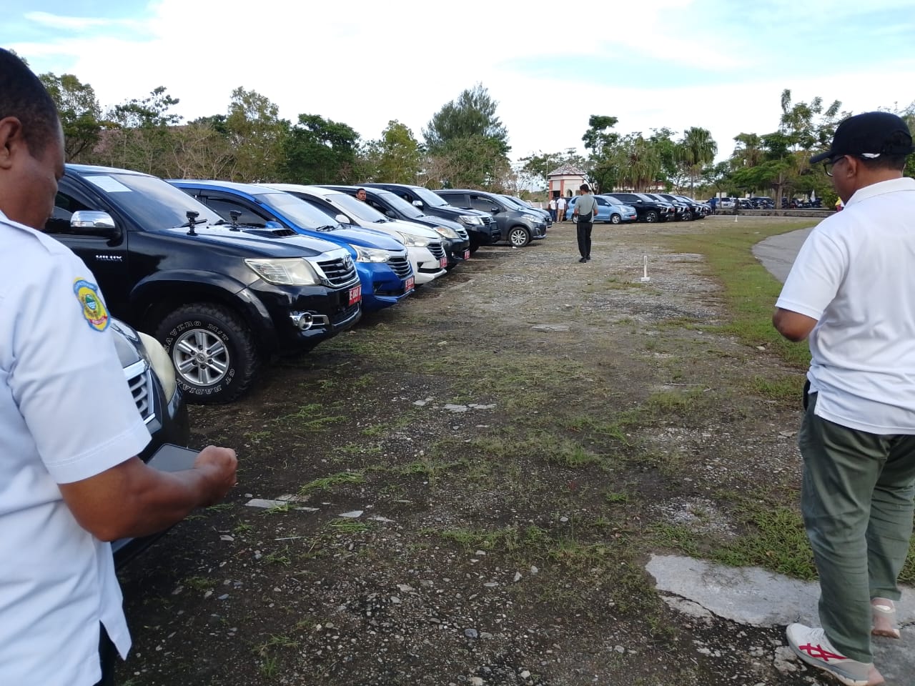 Kendaraan Dinas Roda 4 seluruhnya apel di halaman Kantor Bupati sebagai lokasi pemeriksaan.